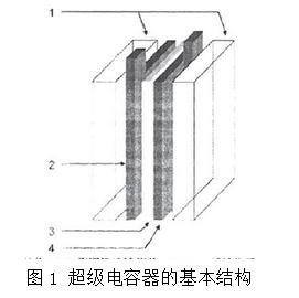 超級電容器結構上的具體細節(jié)依賴于對超級電容器的應用和使用。由于制造商或特定的應用需求,這些材料可能略有不同。所有超級電容器的共性是,他們都包含一個正極,一個負極,及這兩個電極之間的隔膜,電解液填補由這兩個電極和隔膜分離出來的兩個的孔隙。 超級電容器的結構如圖1所示.是由高比表面積的多孔電極材料、集流體、多孔性電池隔膜及電解液組成。電極材料與集流體之間要緊密相連,以減小接觸電阻;隔膜應滿足具有盡可能高的離子電導和盡可能低的電子電導的條件,一般為纖維結構的電子絕緣材料,如聚丙烯膜。電解液的類型根據(jù)電極材料的性質(zhì)進行選擇。