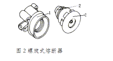(2)螺旋式熔斷器 如圖2所示。熔體上的上端蓋有一熔斷指示器,一旦熔體熔斷,指示器馬上彈出,可透過瓷帽上的玻璃孔觀察到,它常用于機(jī)床電氣控制設(shè)備中。螺旋式熔斷器。分?jǐn)嚯娏鬏^大,可用于電壓等級(jí)500V及其以下、電流等級(jí)200A以下的電路中,作短路保護(hù)。
