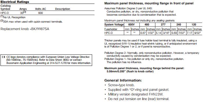 HPC-D保險(xiǎn)絲座詳情參數(shù):