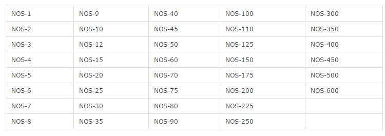 產(chǎn)品型號:NOS-90,NOS-9,NOS-80,NOS-8,NOS-75,NOS-70,NOS-7,NOS-600,NOS-60,NOS-6,NOS-500,NOS-50,NOS-5,NOS-450,NOS-45,NOS-400,NOS-40,NOS-4,NOS-350,NOS-35,NOS-300,NOS-30,NOS-3,NOS-250,NOS-25,NOS-225,NOS-200,NOS-20,