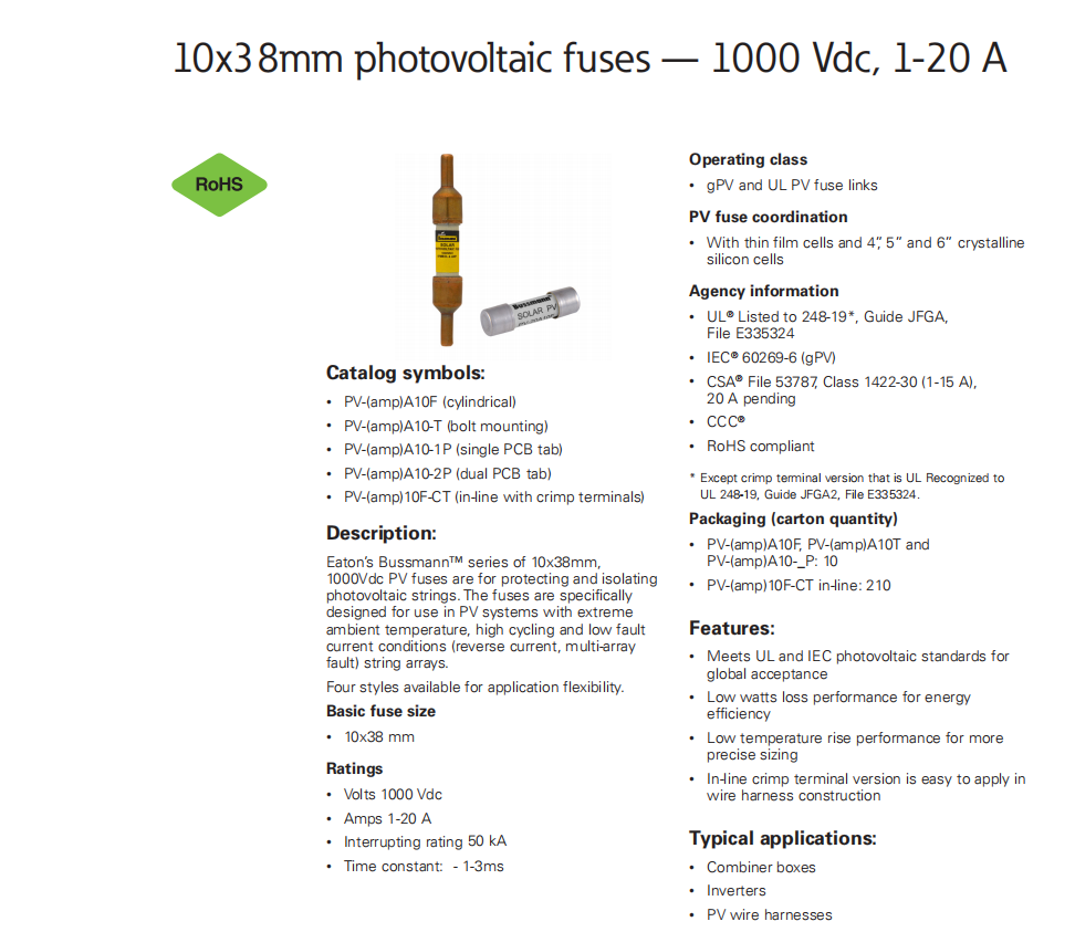Bussmann光伏(1000V) PV-_A10F PV-8A10F,PV-6A10F,PV-5A10F,PV-4A10F,PV-3A10F,PV-2A10F,PV-20A10F,PV-1A10F,PV-15A10F,PV-12A10F,PV-10A10F PV-1A10-TPV-2A10-TPV-3A10-TPV-4A10-TPV-5A10-TPV-6A10-TPV-1A10-1PPV-2A10-1PPV-3A10-1PPV-4A10-1PPV-5A10-1PPV-6A10-1P