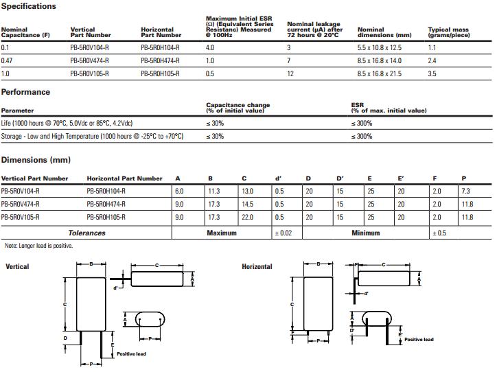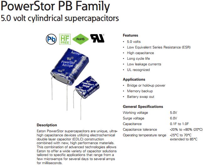 PB系列超級(jí)電容EATON PB-5R0V474-R PB-5R0V105-R PB-5R0H105-R PB-5R0H104-R PB-5R0V104-R PB-5R0H474-R
