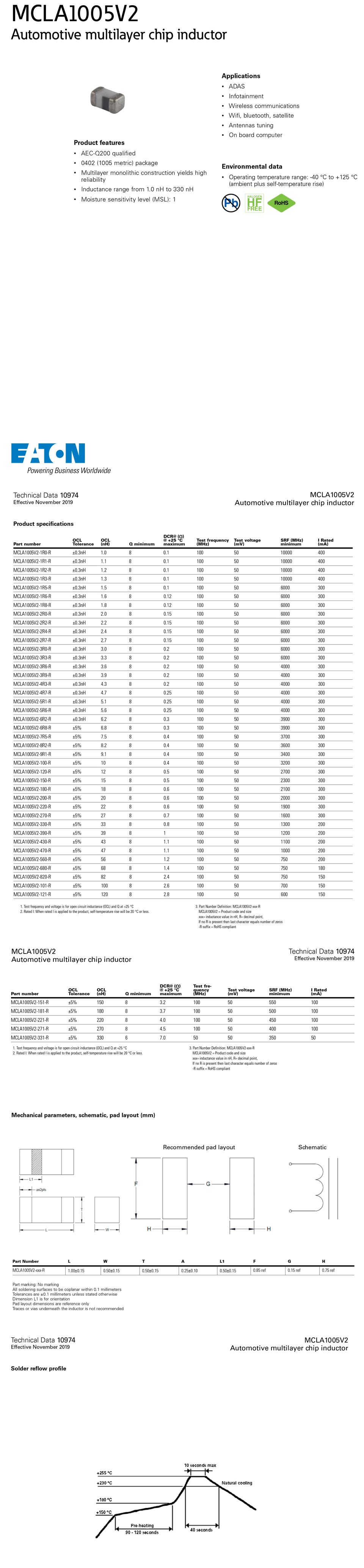 MCLA1005V2系列 伊頓車規(guī)級電感 MCLA1005V2-1R0-R MCLA1005V2-1R1-R MCLA1005V2-1R2-R MCLA1005V2-1R3-R MCLA1005V2-1R5-R MCLA1005V2-1R6-R MCLA1005V2-1R8-R MCLA1005V2-2R0-R MCLA1005V2-2R2-R MCLA1005V2-2R4-R MCLA1005V2-2R7-R MCLA1005V2-3R0-R MCLA1005V2-3R3-R MCLA1005V2-3R6-R MCLA1005V2-3R9-R MCLA1005V2-4R3-R MCLA1005V2-4R7-R MCLA1005V2-5R1-R MCLA1005V2-5R6-R MCLA1005V2-6R2-R MCLA1005V2-6R8-R MCLA1005V2-7R5-R MCLA1005V2-8R2-R MCLA1005V2-9R1-R MCLA1005V2-100-R MCLA1005V2-120-R MCLA1005V2-150-R MCLA1005V2-180-R MCLA1005V2-200-R MCLA1005V2-220-R MCLA1005V2-270-R MCLA1005V2-330-R MCLA1005V2-390-R MCLA1005V2-430-R MCLA1005V2-470-R MCLA1005V2-560-R MCLA1005V2-680-R MCLA1005V2-820-R MCLA1005V2-101-R MCLA1005V2-121-R MCLA1005V2-151-R MCLA1005V2-181-R MCLA1005V2-221-R MCLA1005V2-271-R MCLA1005V2-331-R