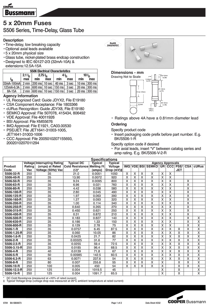 bussmann S506系列玻璃管保險絲 S506-1.25-R S506-2.5-R S506-15-R S506-160-R S506-2-R S506-3.15-R S506-200-R S506-250-R S506-40-R S506-1.6-R S506-12.5-R S506-125-R S506-100-R S506-10-R S506-1-R S506-630-R S506-63-R S506-6.3-R S506-8-R S506-80-R S506-32-R S506-400-R S506-5-R S506-315-R S506-500-R S506-50-R S506-800-R S506-4-R