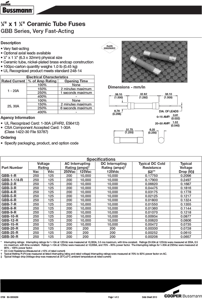 Bussmann GBB 綠色陶瓷管 250Vac GBB-7-R GBB-4-R GBB-9-R GBB-8-R GBB-10-R GBB-5-R GBB-3-R GBB-6-R GBB-1-R GBB-15-R GBB-12-R GBB-20-R GBB-1-1/4-R GBB-30-R GBB-2-R GBB-25-R
