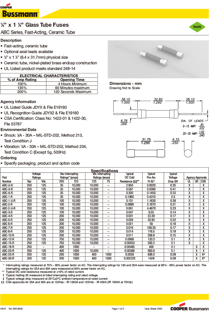 BUSSMANN ABC系列 ABC-1-1/2-R ABC-1/2-R ABC-7-R ABC-3-R ABC-18-R ABC-8-R ABC-15-R ABC-5-R ABC-4-R ABC-6-R ABC-20-R ABC-2-1/2-R ABC-3/4-R ABC-1/4-R ABC-12-R ABC-1-R ABC-10-R ABC-30-R ABC-25-R ABC-2-R