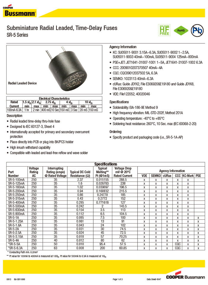 產(chǎn)品型號:SR-5-800mA,SR-5-630mA,SR-5-500mA,SR-5-4A,SR-5-400mA,SR-5-315mA,SR-5-3.15A,SR-5-2A,SR-5-250mA,SR-5-200mA,SR-5-2.5A,SR-5-1A,SR-5-160mA,SR-5-125mA,SR-5-100mA,SR-5-1.6A,SR-5-1.25A,