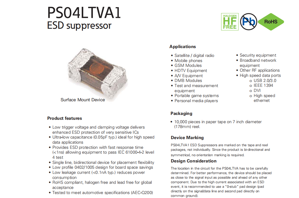 PS04LTVA1系列 ESD靜電抑制器