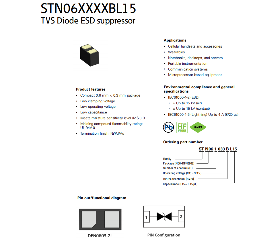 STN06XXXXBL15 TVS二極管ESD抑制器