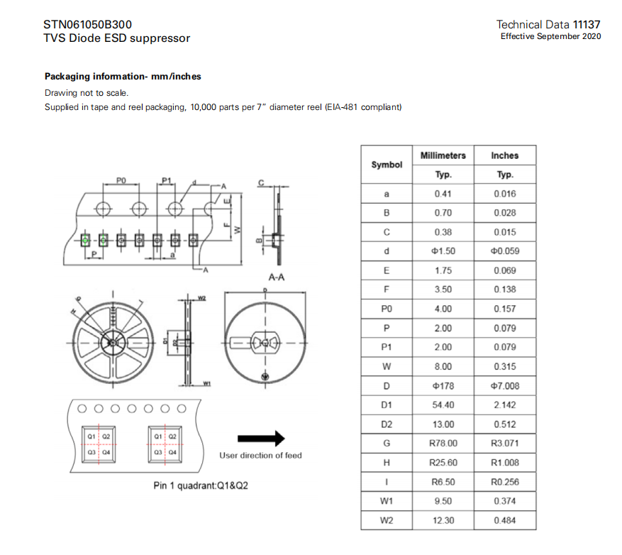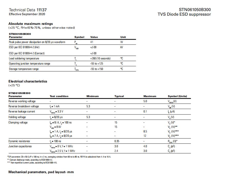 STN061050B300系列 TVS二極管ESD抑制器