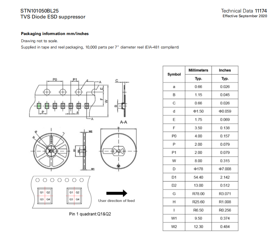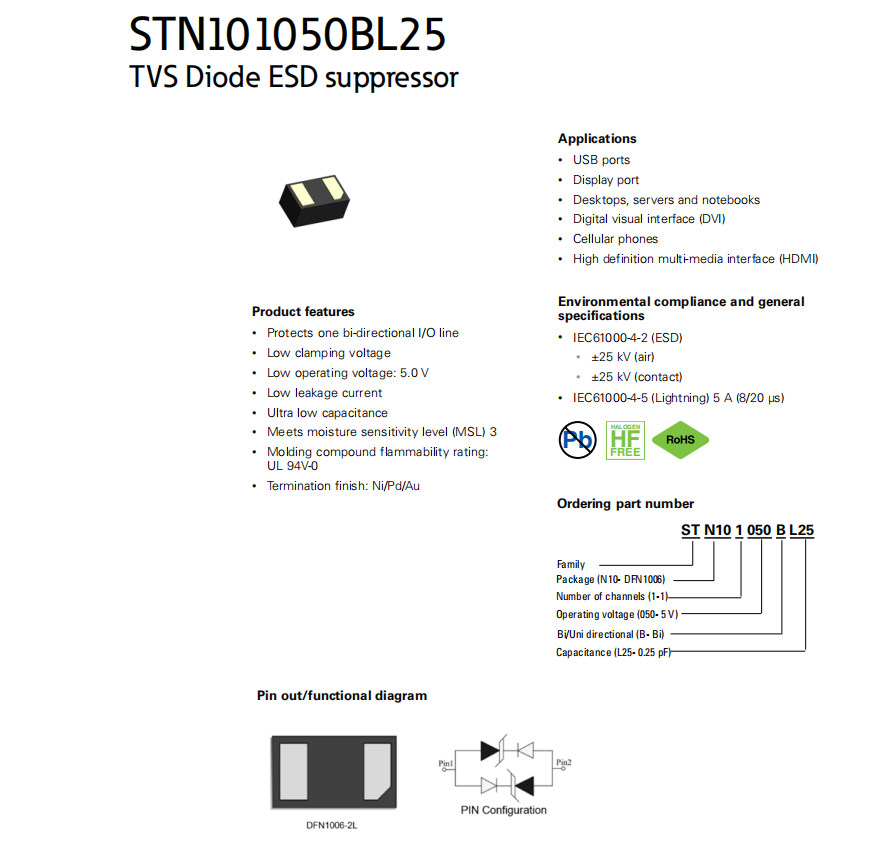 STN101050BL25系列 TVS二極管ESD抑制器