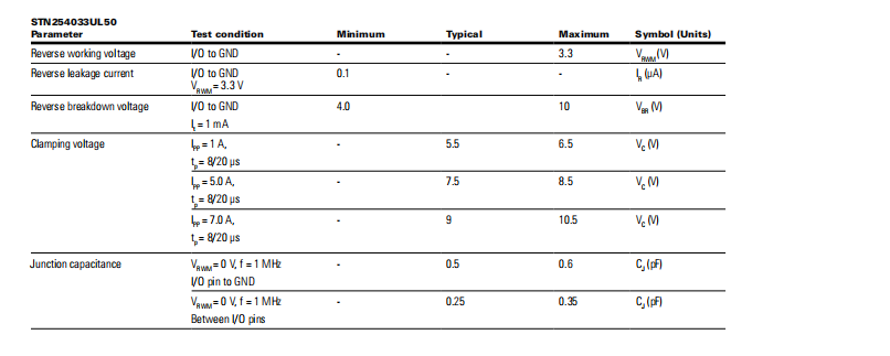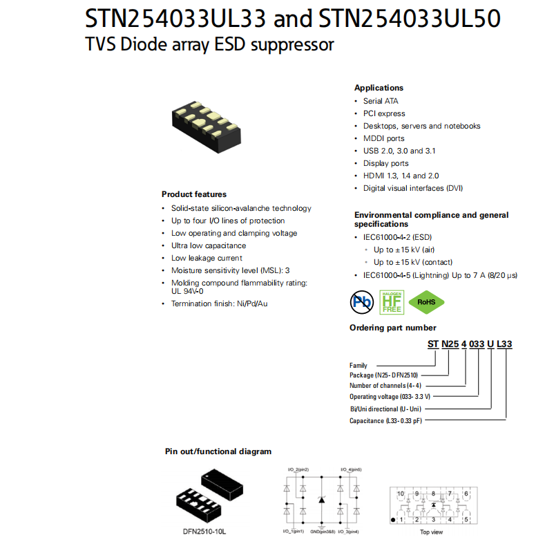 STN254033UL33系列 TVS二極管ESD抑制器